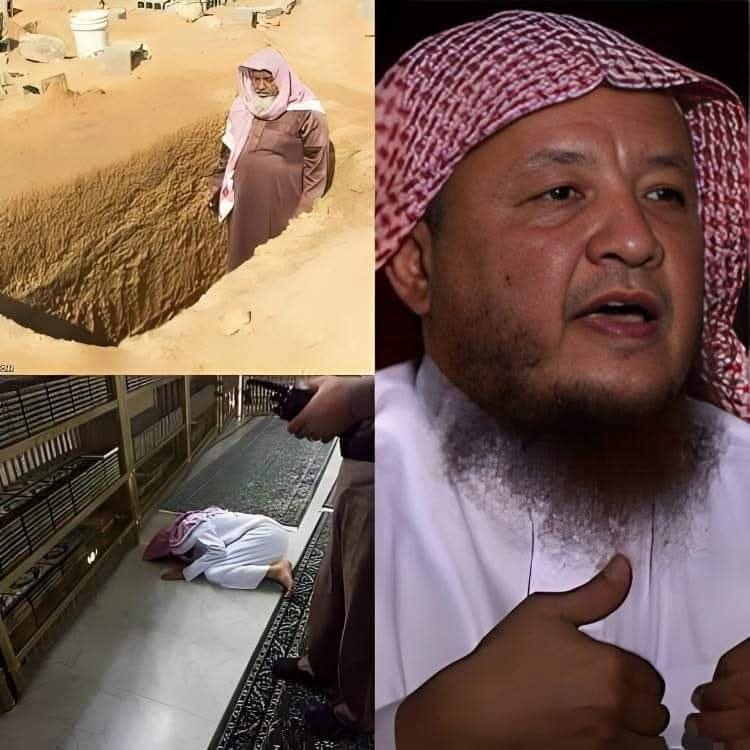 ولم يكتفوا حتى الملحق التابع للمسجد قد امتلئ حتى أنهم أغلقوا الطرق والممرات المؤدية للمسجد ولو رأيتم جنا,,زة الشاب وهي تخرج من المسجد مسرعة كأنها تطير لوحدها ولا يحملها أحد وتسابق الجميع على قب,,ره وأنزلوه من جهة رأسه ووجهوه نحو القبلة وحلوا الأربطة وقاموا بتغطية الق,,بر وحثوا عليه التراب